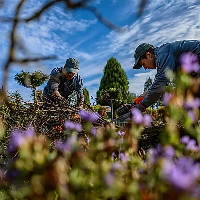 We remove leaves and debris, clean paved areas, clear overgrowth, tidy up garden edges, and dispose of organic waste.