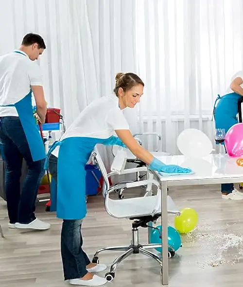 Our after-party cleaning service includes trash collection and disposal, floor cleaning, sanitizing surfaces, cleaning kitchens and bathrooms, and more. Additional services like stain removal or window cleaning can be added upon request.
